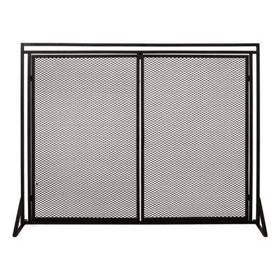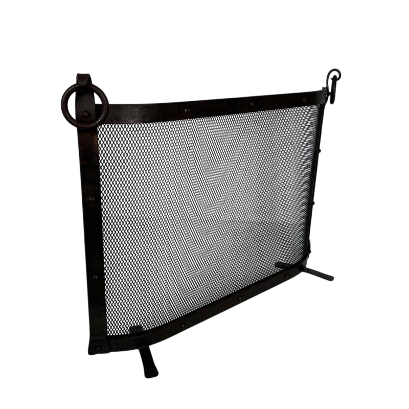 ฉากกั้นเตาผิงเหล็กดัดสีดำ ดีไซน์คลาสสิก แบบตั้งพื้น