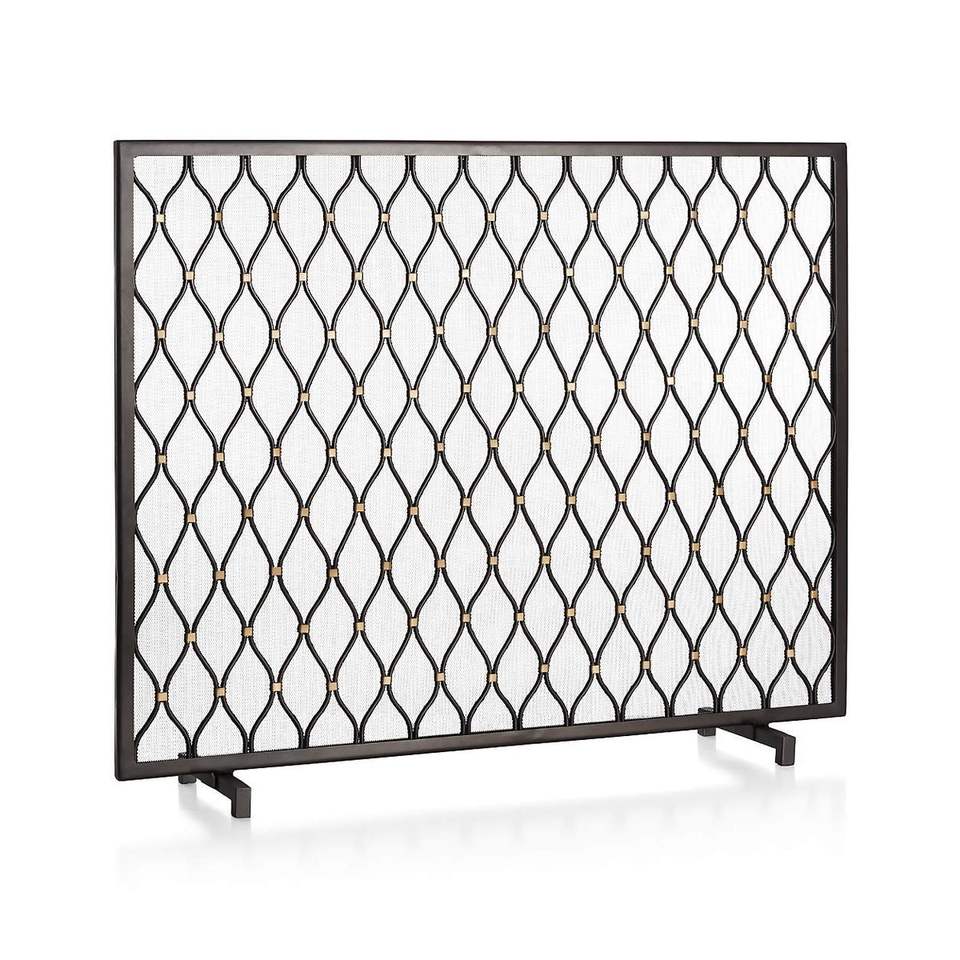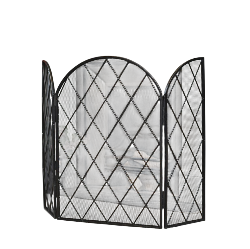 ฉากกั้นเตาผิงเหล็กดัดสีดำ รุ่น Luxury Spark Fire Guard ขนาดใหญ่ แบบตั้งพื้น