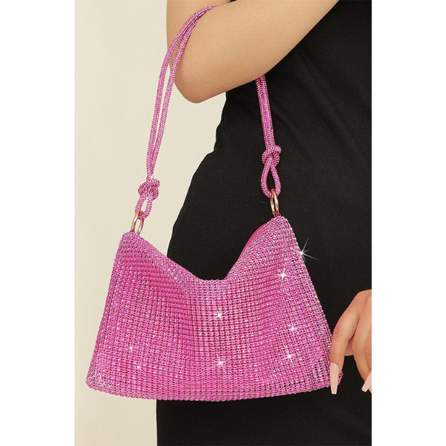กระเป๋าถือประดับเพชรพลอยสีชมพูหรูหรา กระเป๋าสะพายไหล่สไตล์ดีไซเนอร์สำหรับผู้หญิงสำหรับงานปาร์ตี้