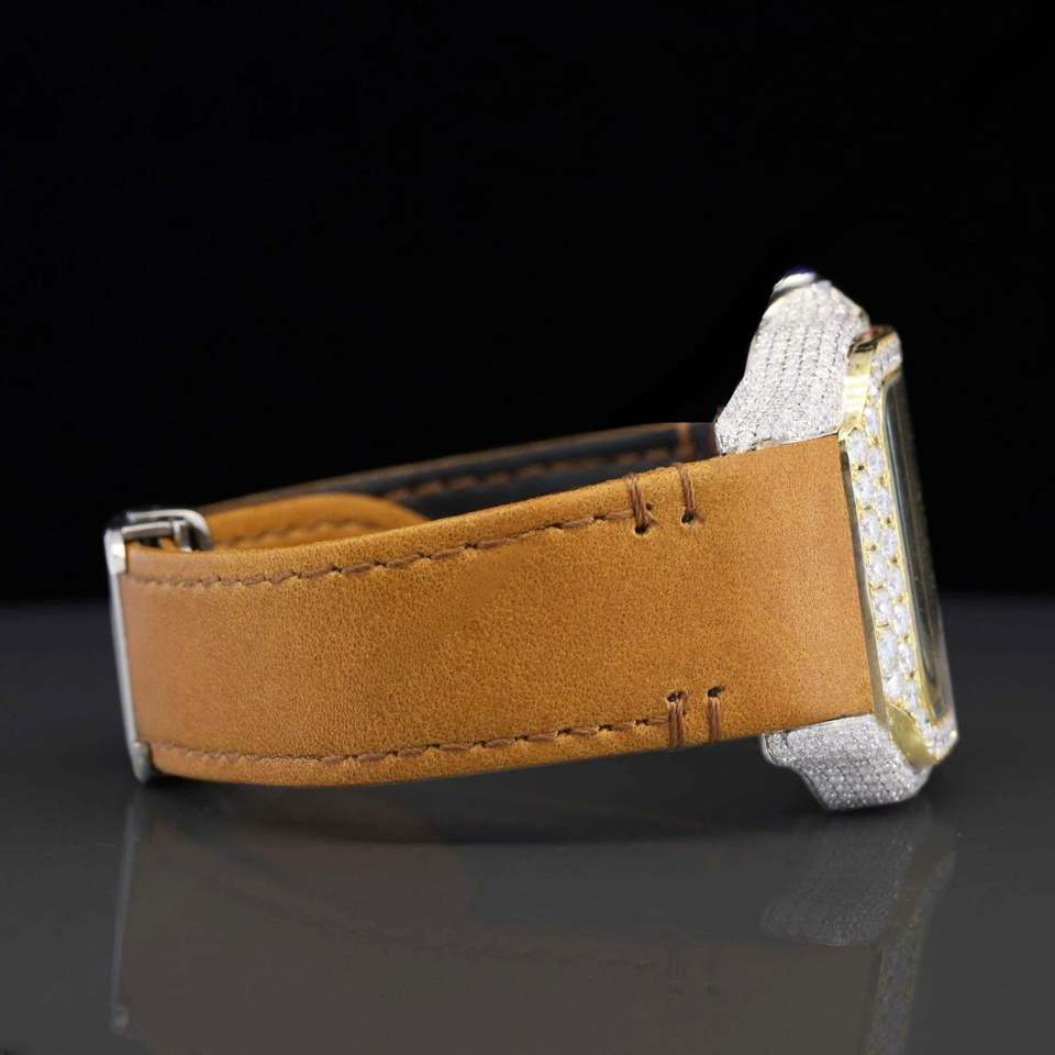 นาฬิกาข้อมือฮิปฮอปสุดหรู ดีไซน์สปอร์ต กันน้ำ สีเหลืองมัสตาร์ด ตัวเรือนสแตนเลสประดับเพชรโมอิสซาไนต์ VVS หน้าปัดอนาล็อกแบบฝังเพชร