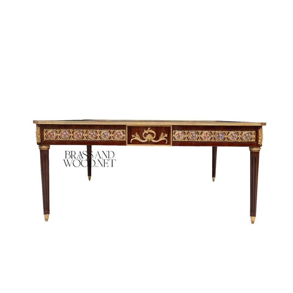 โต๊ะกาแฟทรงสี่เหลี่ยมหรูหรา พร้อมลวดลายไม้ประณีตและรายละเอียดทองเหลือง สำหรับตกแต่งห้องนั่งเล่นอย่างมีสไตล์เหนือกาลเวลา