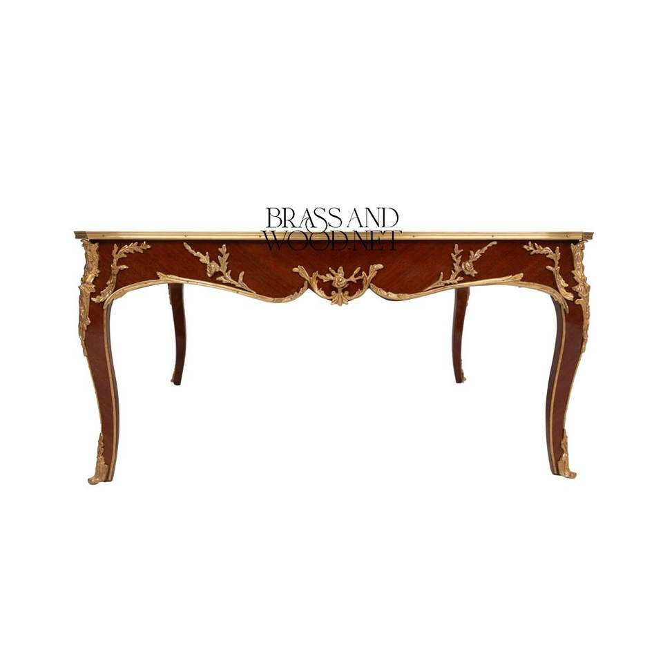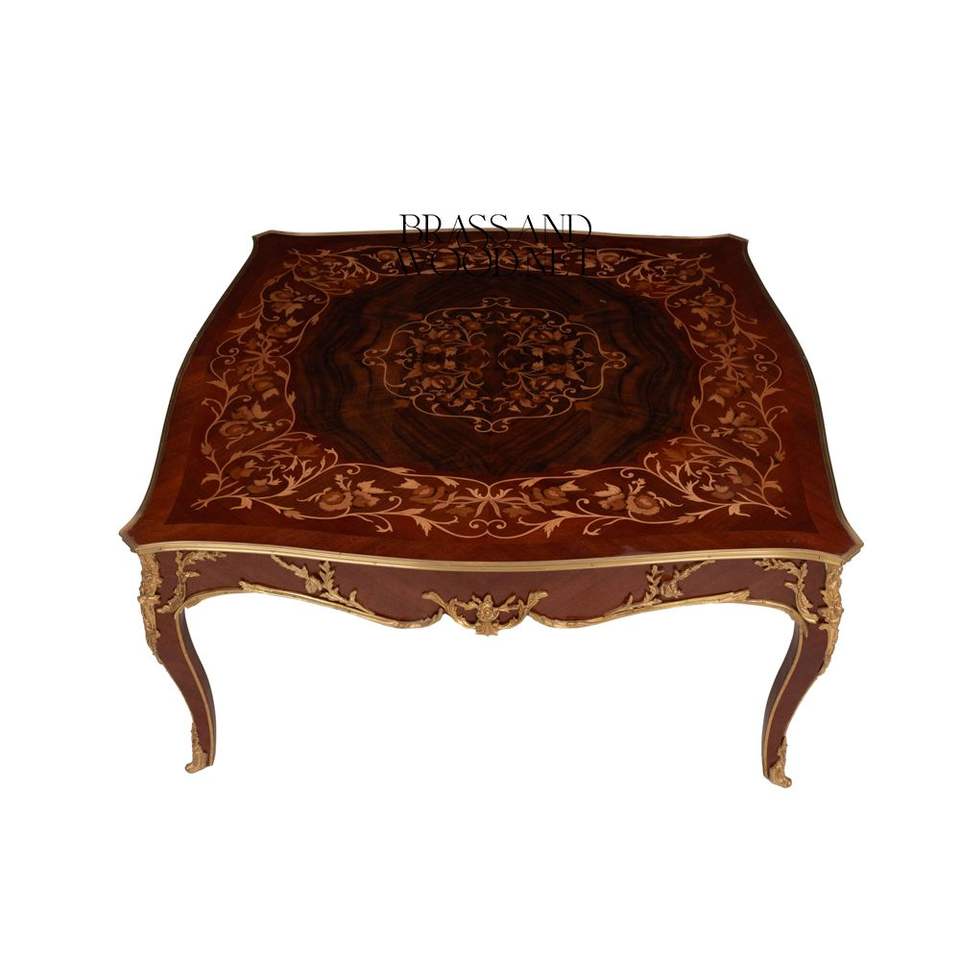 โต๊ะกาแฟทรงสี่เหลี่ยมหรูหรา พร้อมลายไม้สลักประณีตและตกแต่งด้วยทองเหลือง เพื่อการตกแต่งห้องนั่งเล่นที่คลาสสิกและสง่างาม