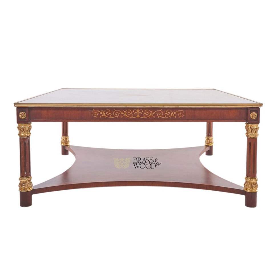 โต๊ะกาแฟทรงสี่เหลี่ยมหรูหราพร้อมท็อปหินอ่อนสีขาวและรายละเอียดทองแกะสลักด้วยมืออย่างประณีตสำหรับเฟอร์นิเจอร์ห้องนั่งเล่นสไตล์คลาสสิก