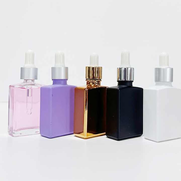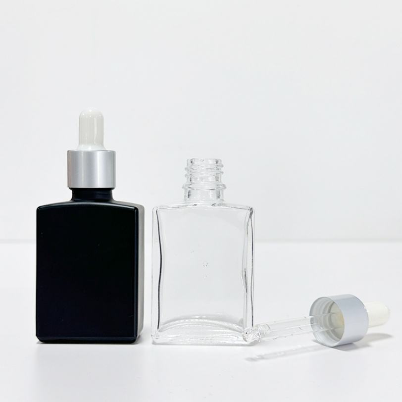 Cosmetic Glass Bottle, Square Glass serum bottle, glass dropper bottle