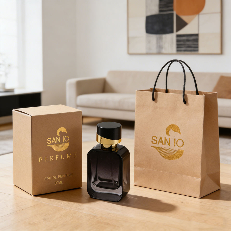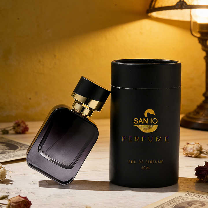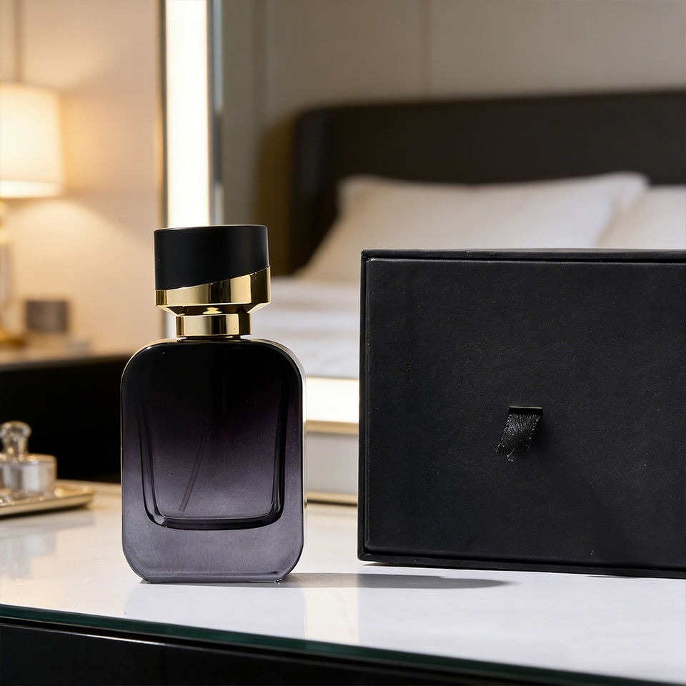 ขวดน้ำหอมแก้วหรูหราสีน้ำเงินเข้ม ดีไซน์สวยงาม พร้อมกล่อง ขนาด 50 มล. สำหรับผู้หญิงและผู้ชาย สั่งผลิตได้จำนวนน้อย