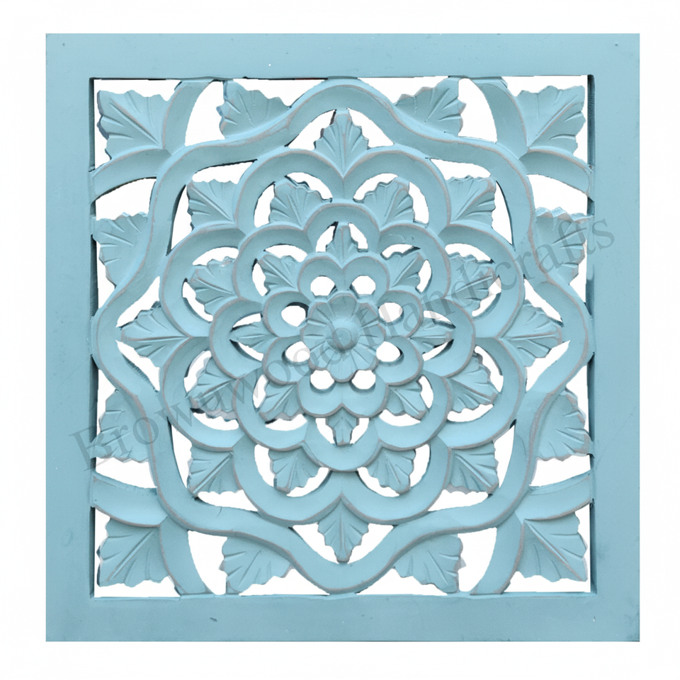 แผงแขวนผนังแกะสลักลายดอกไม้ MDF สี่เหลี่ยมหรูหราสำหรับตกแต่งห้องนอนและสำนักงานงานไม้ตกแต่ง Mandala artwork ขายส่ง