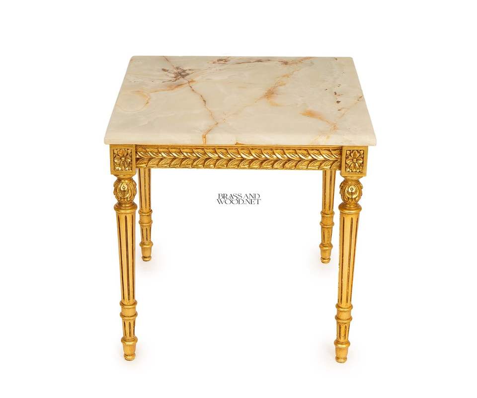 โต๊ะข้างทรงสี่เหลี่ยมหรูหราพร้อมท็อปหินอ่อนสีเขียวและโครงแกะสลักลายฉลุสีทองอย่างประณีตสำหรับตกแต่งมุมห้องสไตล์คลาสสิก