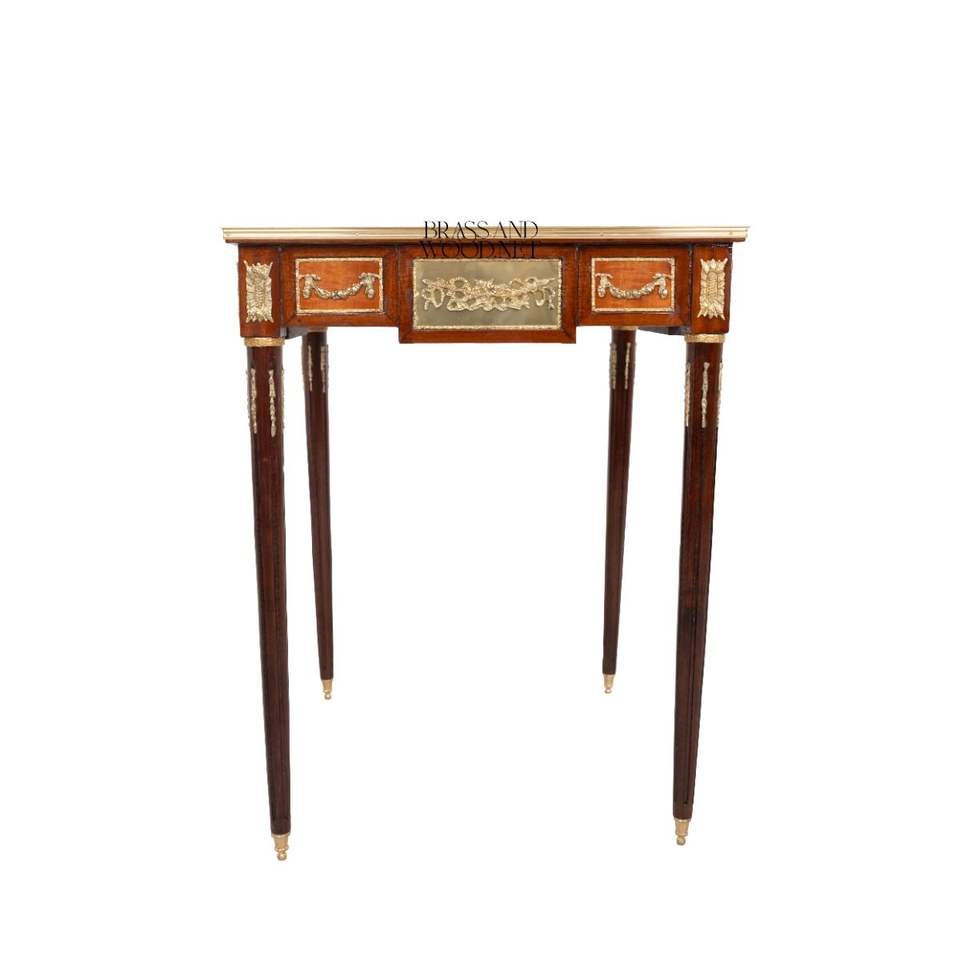 โต๊ะข้างทรงสี่เหลี่ยมหรูหรา พร้อมงานฝังมุกประณีตและตกแต่งด้วยทองเหลืองสีทองอร่าม สำหรับตกแต่งภายในบ้านสไตล์คลาสสิก