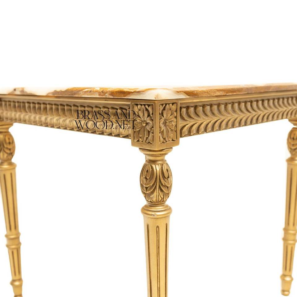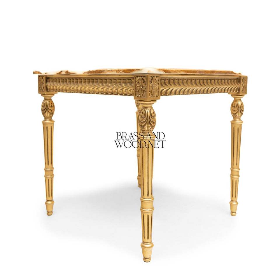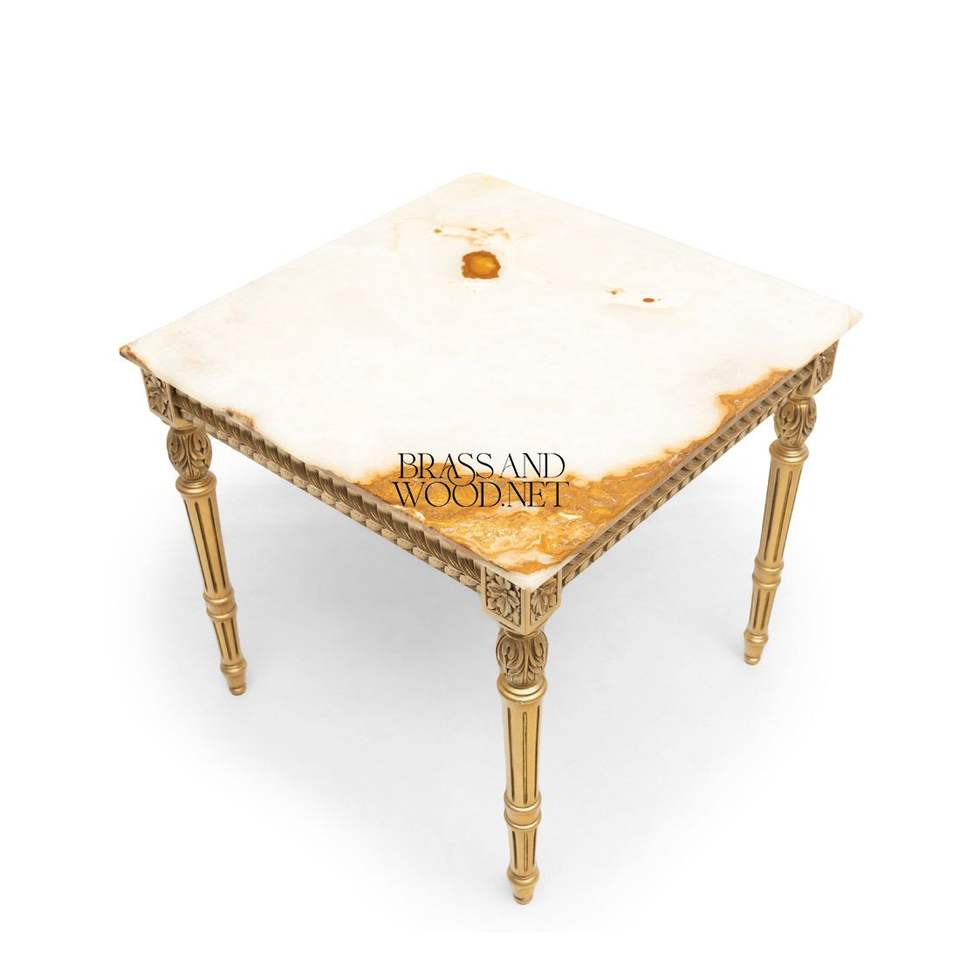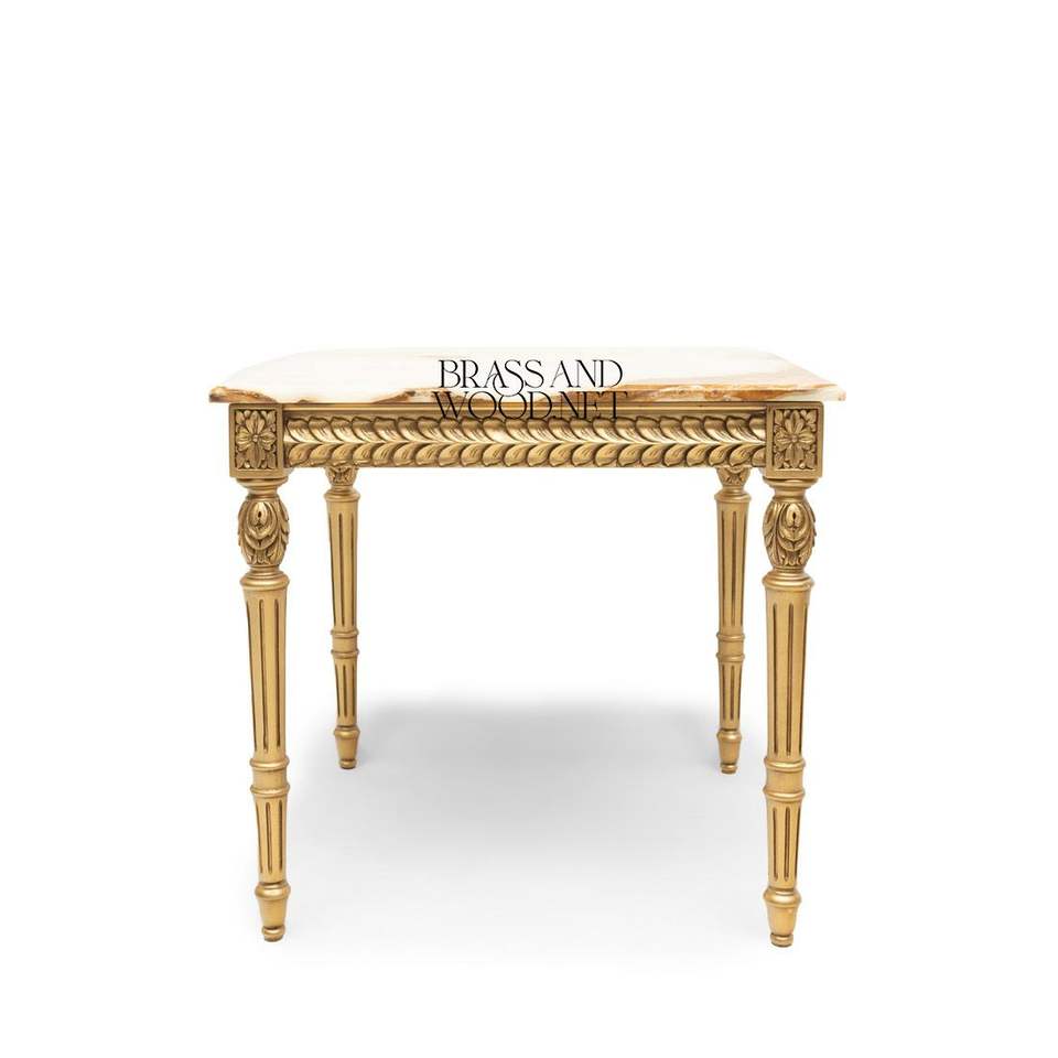 โต๊ะข้างทรงสี่เหลี่ยมหรูหราพร้อมท็อปหินอ่อนสีขาวธรรมชาติและขาไม้ลายลูกฟูกประดับทองคำเปลวสำหรับตกแต่งสไตล์พระราชวังคลาสสิก
