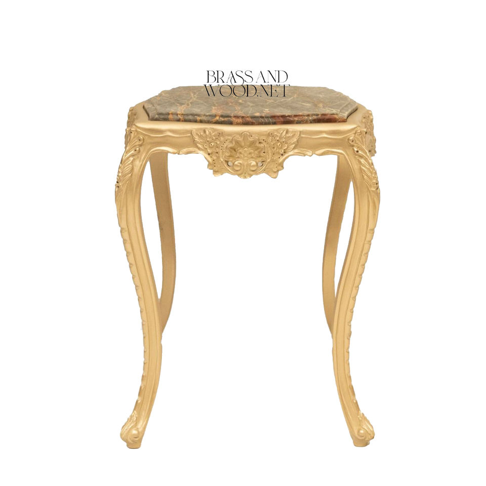 โต๊ะข้างทรงสี่เหลี่ยมหรูหราพร้อมท็อปหินอ่อนธรรมชาติระดับพรีเมียมและฐานลายทองแกะสลักด้วยมืออย่างประณีตสำหรับตกแต่งบ้านสไตล์คลาสสิก
