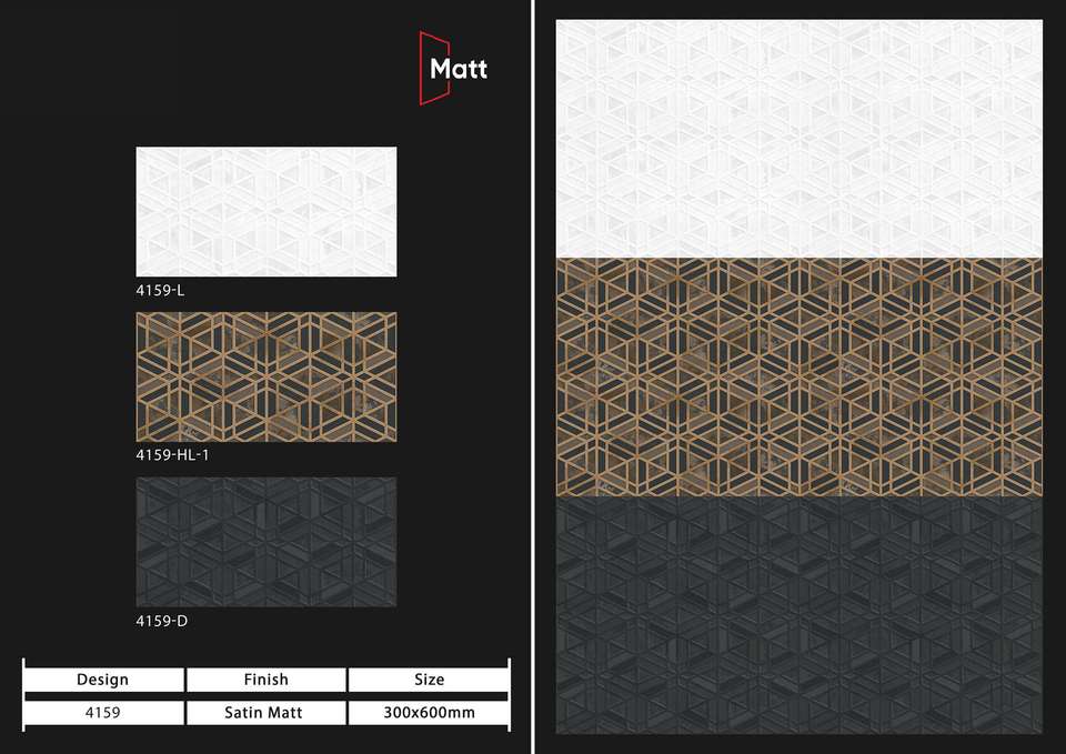 กระเบื้องเซรามิกหรูหราแบบด้าน ขนาด 300x600 มม. เหมาะสำหรับห้องน้ำ ห้องครัว ห้องนั่งเล่น ทำความสะอาดง่าย ป้องกันการลื่น ทนทาน
