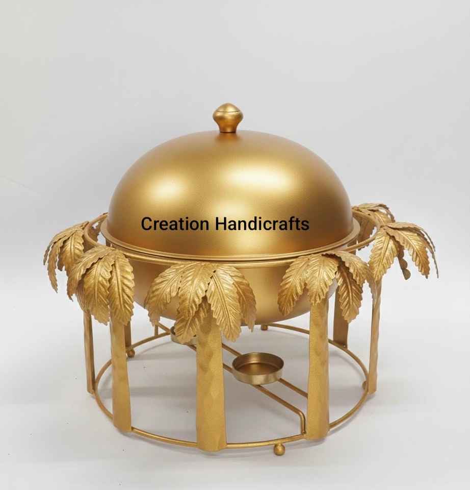 หม้อตุ๋นสแตนเลสหรูหราพร้อมขาตั้งลายทอง สำหรับบุฟเฟ่ต์และโรงแรม จานเสิร์ฟอาหารงานแต่งงานและงานเลี้ยง พร้อมอุปกรณ์อุ่นอาหาร