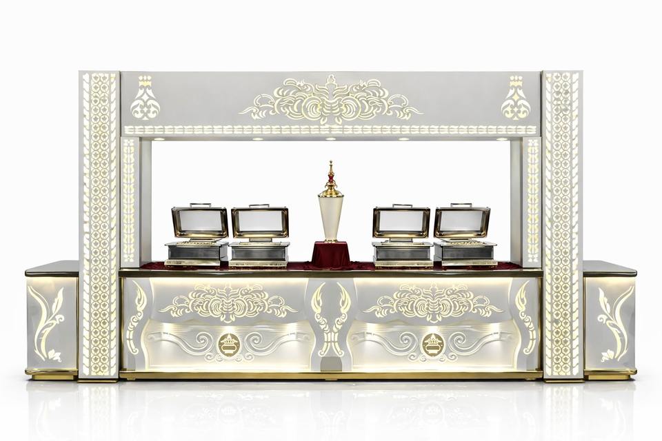 เคาน์เตอร์จัดเลี้ยงสแตนเลสหรูหรา โต๊ะโชว์บุฟเฟ่ต์แบบกำหนดเองสำหรับโรงแรม ร้านอาหาร และงานจัดเลี้ยง