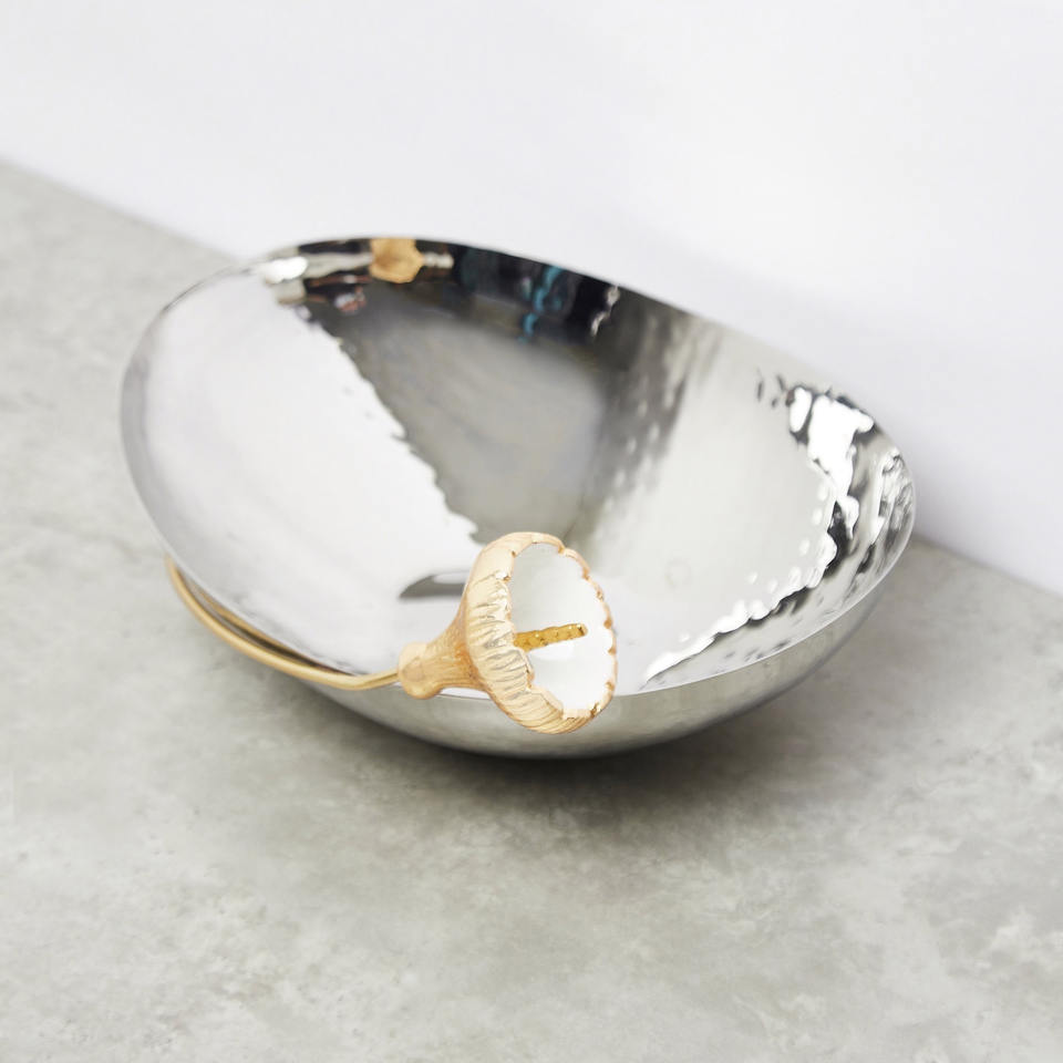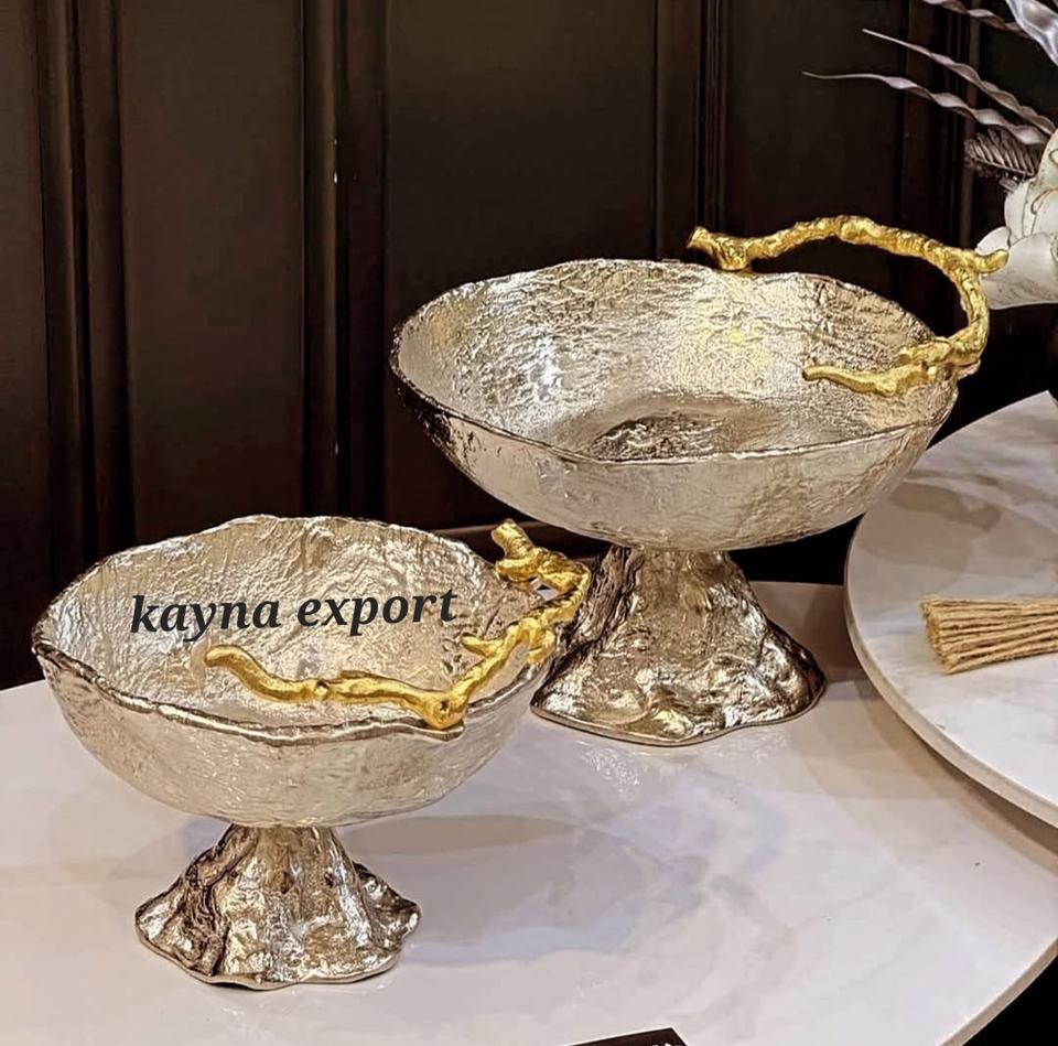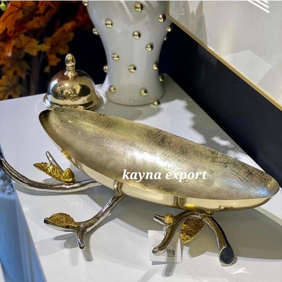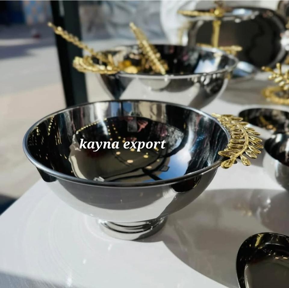 ชามใส่จานทำจากสแตนเลสพร้อมดอกไม้สีทองสำหรับตกแต่งโต๊ะชามโลหะ