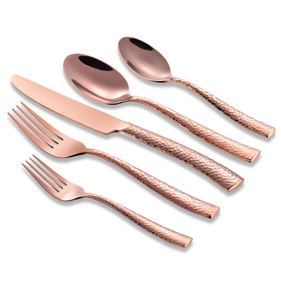 ชุดช้อนส้อมสแตนเลสหรูหราทันสมัยเคลือบทอง 24k ขัดเงาด้วยมือ บรรจุในกล่องสี