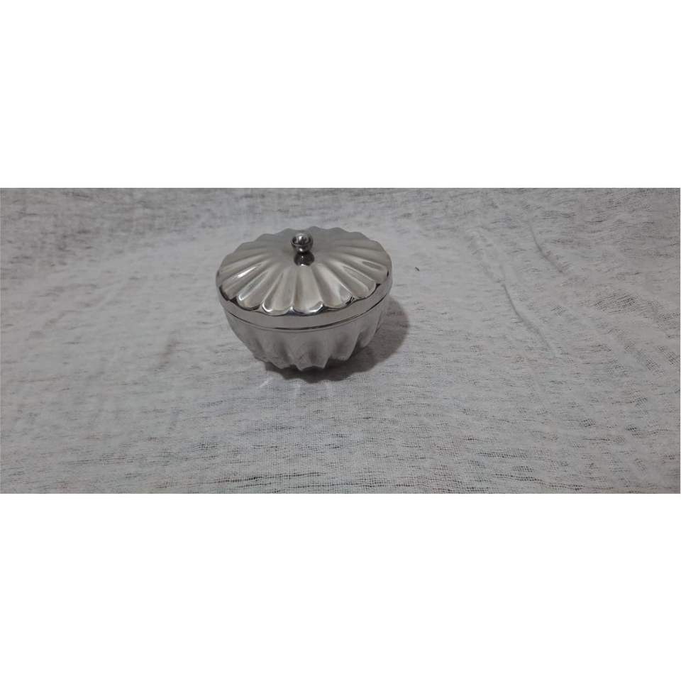 ชามเสิร์ฟสแตนเลสสตีลหรูหราพร้อมฝาปิด ภาชนะใส่ขนมและถั่ว ขัดเงาอย่างดี ภาชนะเก็บของในครัวและถาด