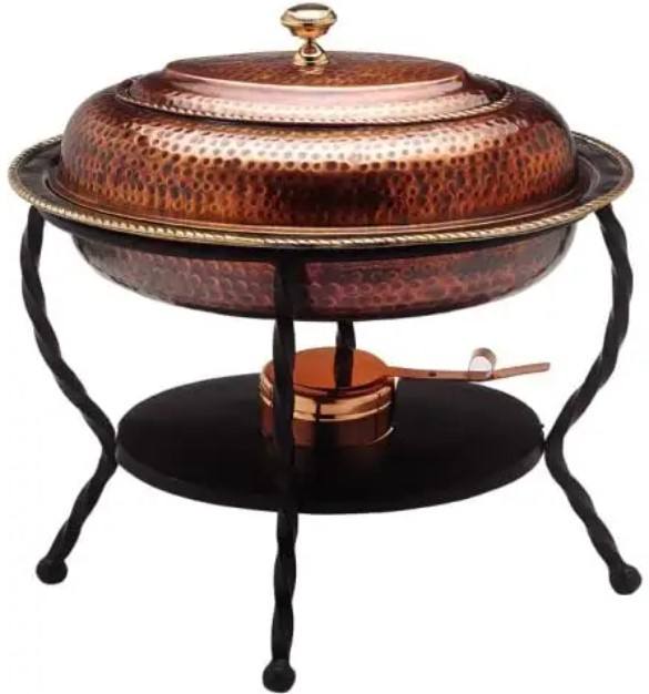 ชุดชามอาหารสแตนเลสสตีลสีทองพร้อมฝาปิดทนทานชุดบุฟเฟ่ต์จานชุบโลหะแบบพรีเมี่ยม