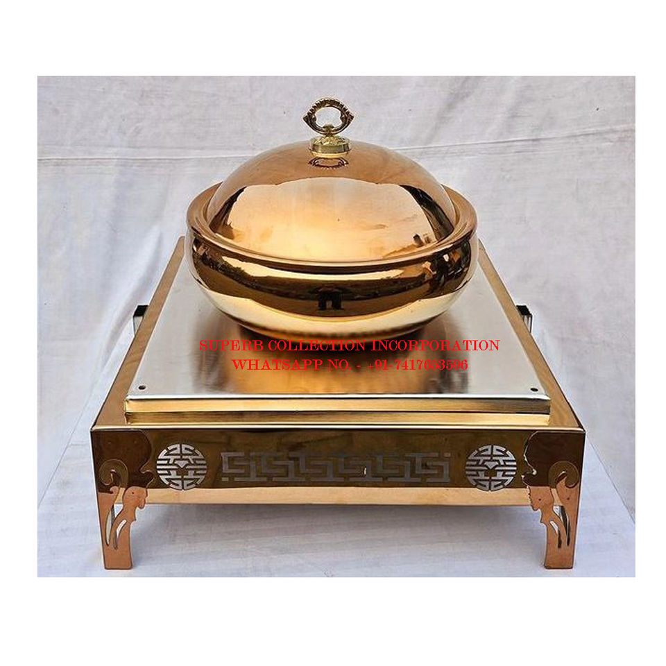Luxury Stainless Steel Gold Finish Chafing Dish With Ornate Stand Buffet Food Warmer For Hotel And Restaurant Catering Supplies