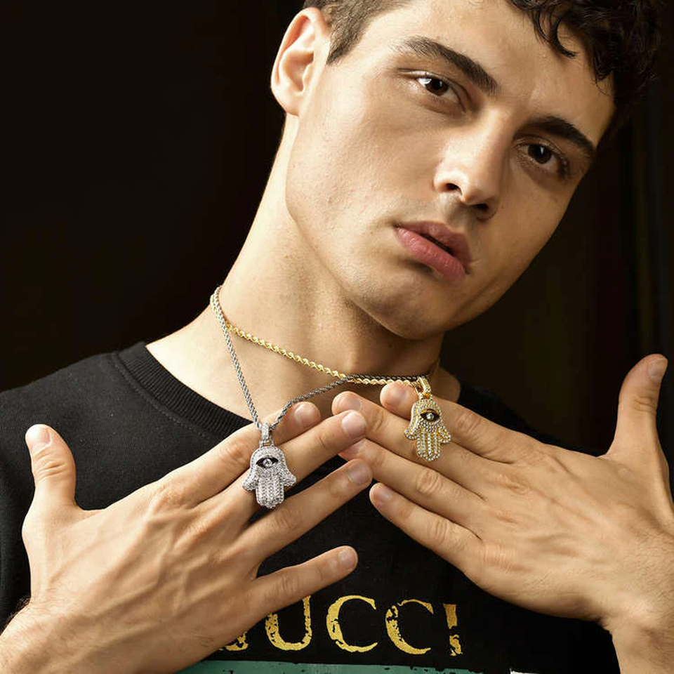 จี้รูปมือฮัมซาสแตนเลสสตีลสุดหรู พร้อมคุณสมบัติป้องกันภัยจากดวงตาชั่วร้ายและประดับด้วยหิน CZ