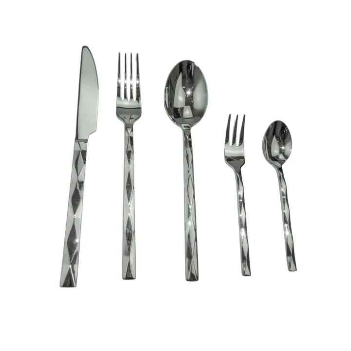 ชุดช้อนส้อมมีดสแตนเลสหรูหรา ดีไซน์ทันสมัย ทนทาน เป็นมิตรกับสิ่งแวดล้อม ด้ามจับสีเงินสีทอง ชุดอุปกรณ์รับประทานอาหารสุดหรู