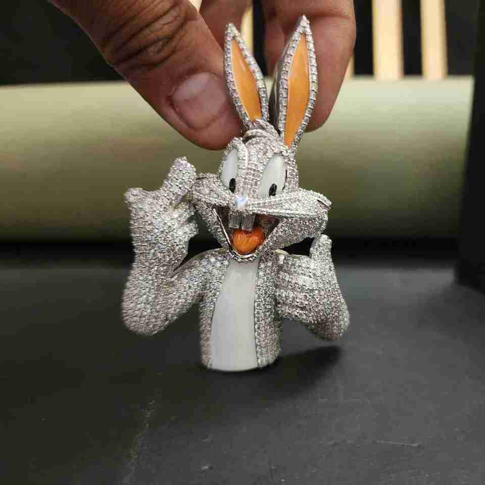 จี้ห้อยคอรูปกระต่ายประดับเพชรโมอิสซาไนต์สแตนเลสสตีลสุดหรู สำหรับเป็นของขวัญวันวาเลนไทน์