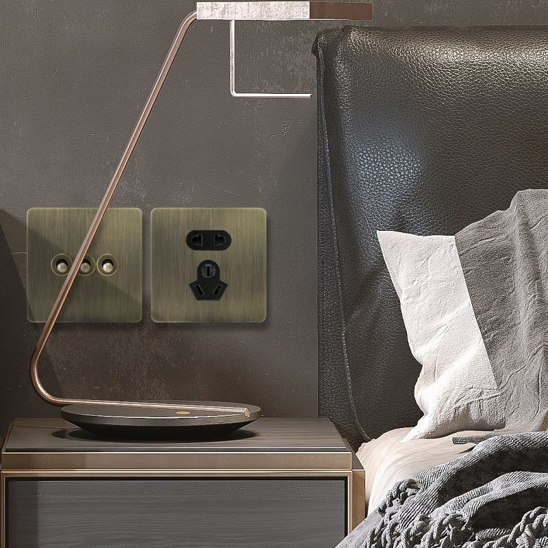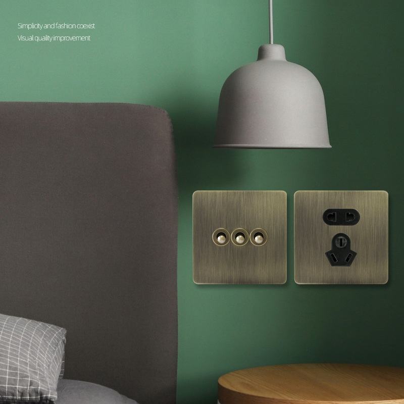 สวิตช์ติดผนังแผงสแตนเลสสตีลสุดหรูสวิตช์ไฟฟ้ามาตรฐานสหภาพยุโรปมาตรฐาน1แก๊งสวิตช์สลับสำหรับโรงแรมแบบกำหนดเองเต้ารับสำหรับบ้าน