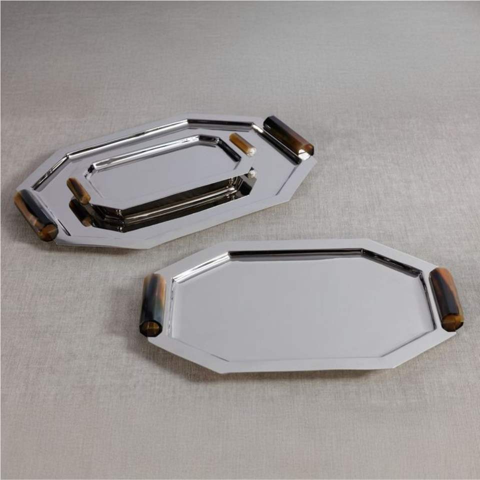 ถาดเสิร์ฟสแตนเลสหรูหรา ทรงกลม จานอาหารโลหะขัดเงา สำหรับโรงแรม ร้านอาหาร ขายส่ง