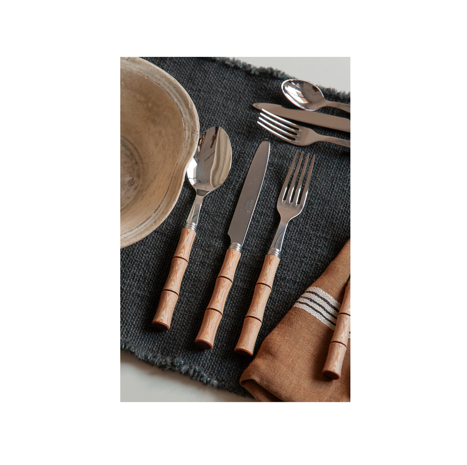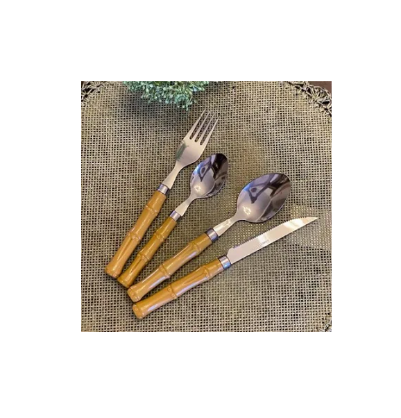 ช้อนสแตนเลสมีดีไซน์สุดหรูด้ามไม้ไผ่ทุบสำหรับโรงแรมโต๊ะของหวานและช้อนซุป