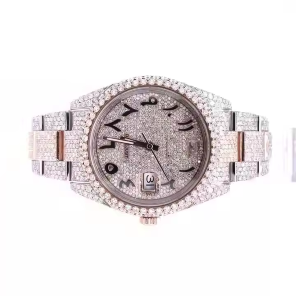 นาฬิกาสแตนเลสสุดหรู VVS Moissanite ประดับเพชรติดกระจกหน้าอกแวววาวแบบฮิปฮอปแฟชั่นผู้หญิงผู้ชาย