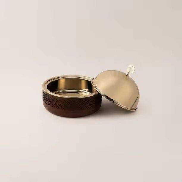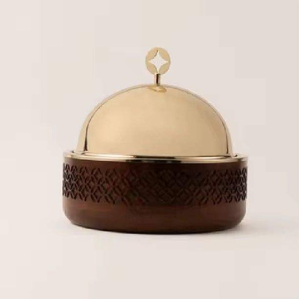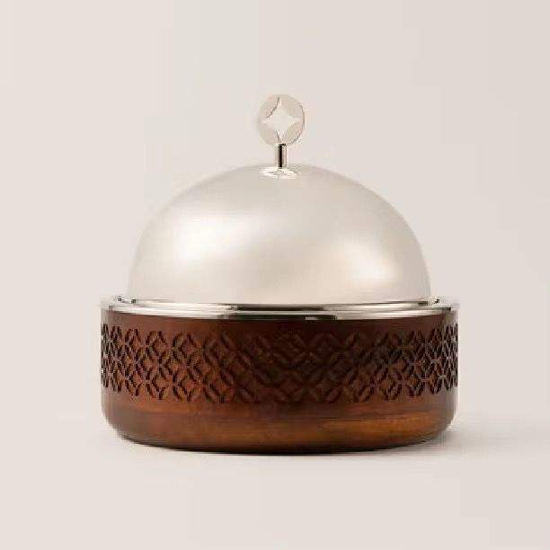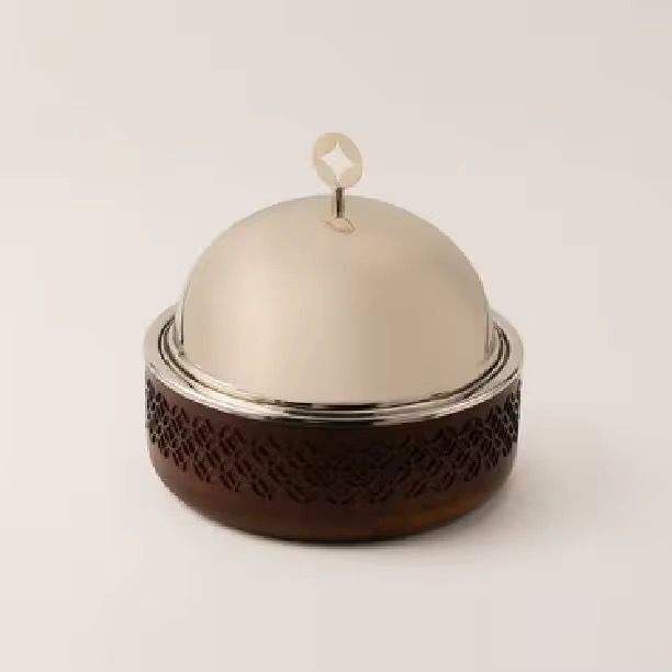 หม้อตุ๋นสแตนเลสและไม้หุ้มฉนวนอย่างดี พร้อมฝาโดม ตกแต่งสวยงาม ใช้เสิร์ฟอาหารร้อน