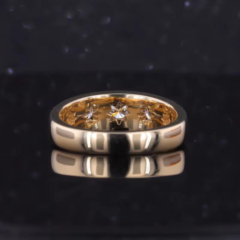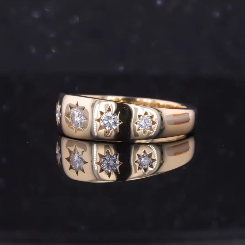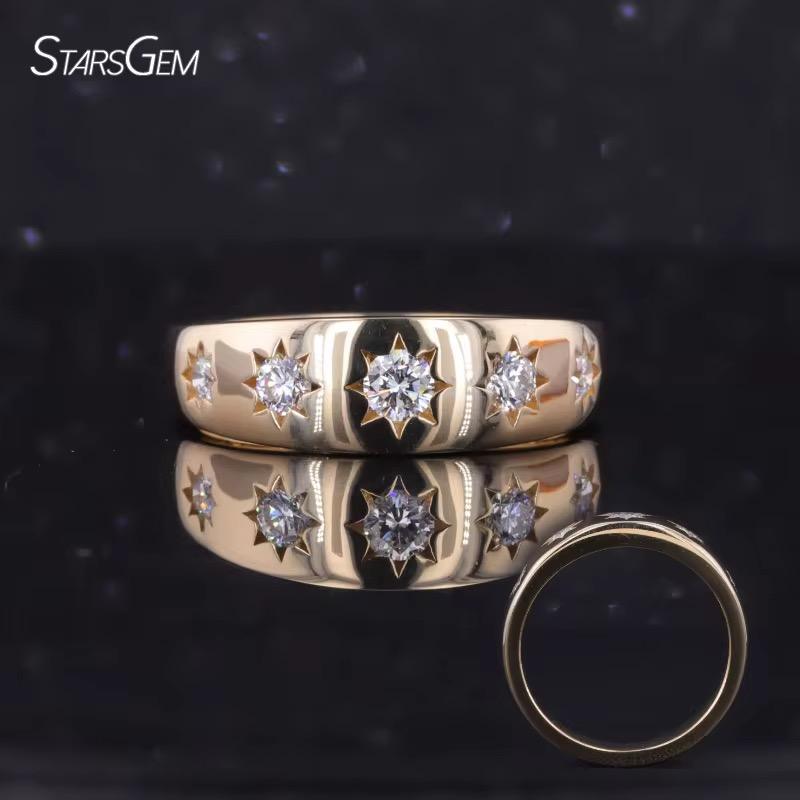 แหวนหมั้นเพชรโมอิสซาไนต์ห้าเม็ดทรงกลมหรูหราสำหรับผู้ชาย แหวนแต่งงานทรงกลมเจียระไนแบบบริลเลียนท์ ผู้จำหน่ายขายส่ง