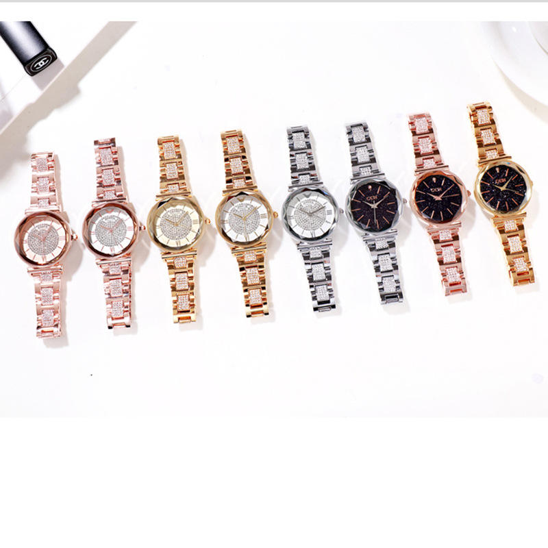 นาฬิกาคริสตัลรูปดาวสุดหรูสำหรับผู้หญิงพร้อมสายเหล็กควอตซ์กันน้ำสำหรับสไตล์แฟชั่นคริสต์มาส
