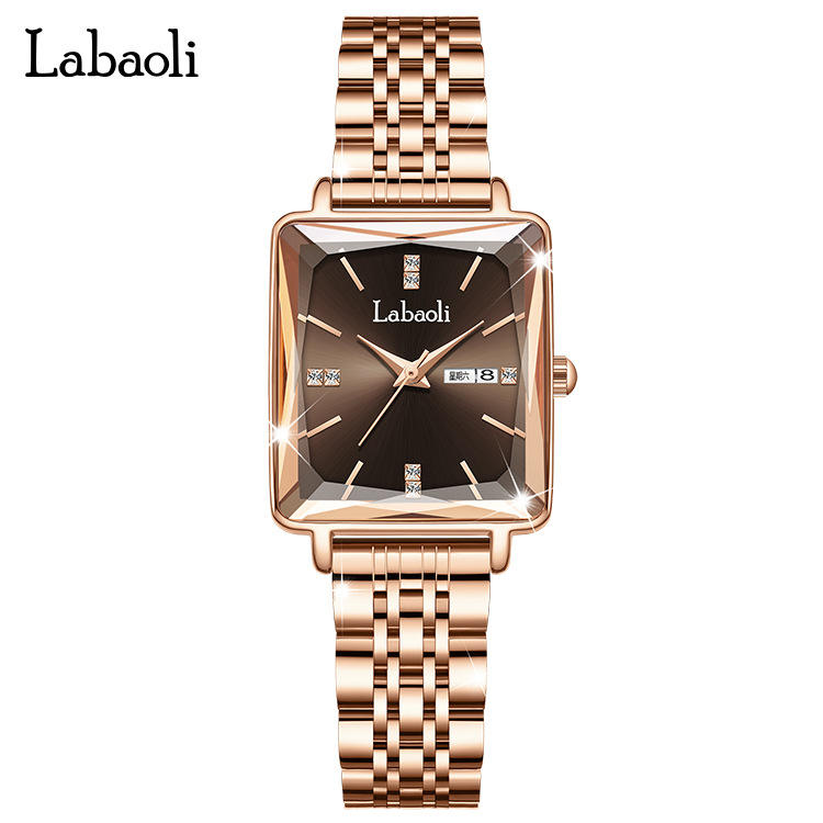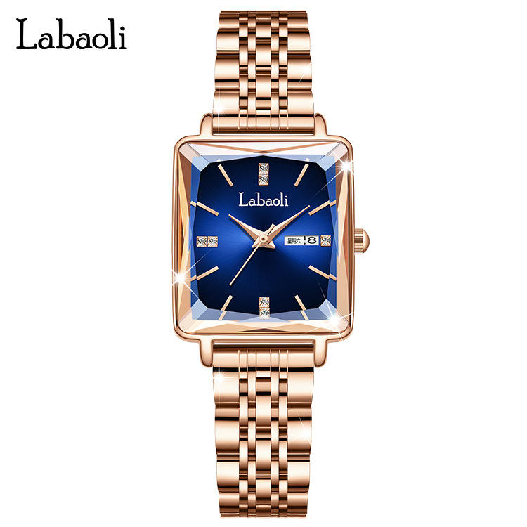 นาฬิกาสายเหล็กหรูหรากันน้ำดูปฏิทินคู่นาฬิกาผู้หญิงสุดพิเศษ