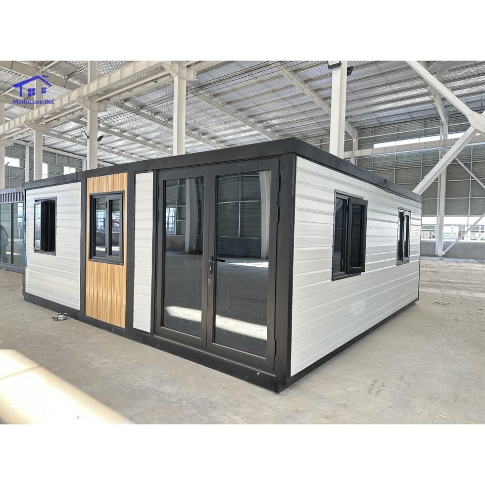 บ้านเหล็กสำเร็จรูปหรูหรา ขนาด 20 ฟุต 40 ฟุต แบบขยายได้ คอนเทนเนอร์ 1-4 ห้องนอน บ้านพักตากอากาศขนาดเล็กแบบเคลื่อนย้ายได้