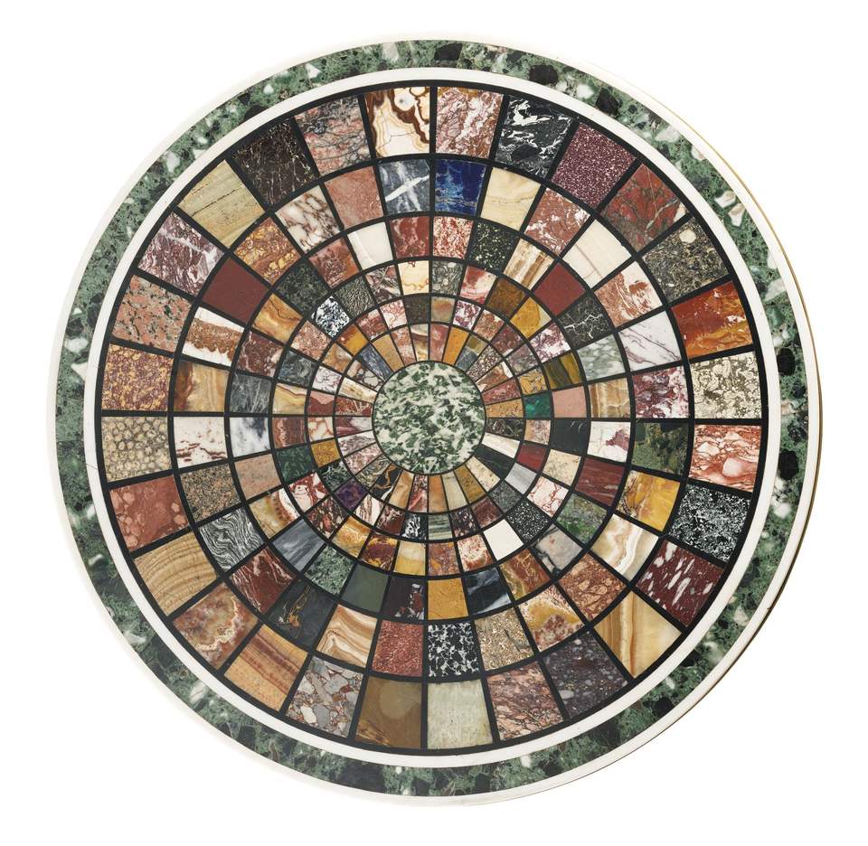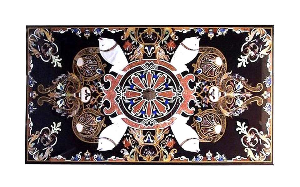 ท็อปโต๊ะฝังหินหรูหรา อัญมณีกึ่งมีค่า Pietra Dura