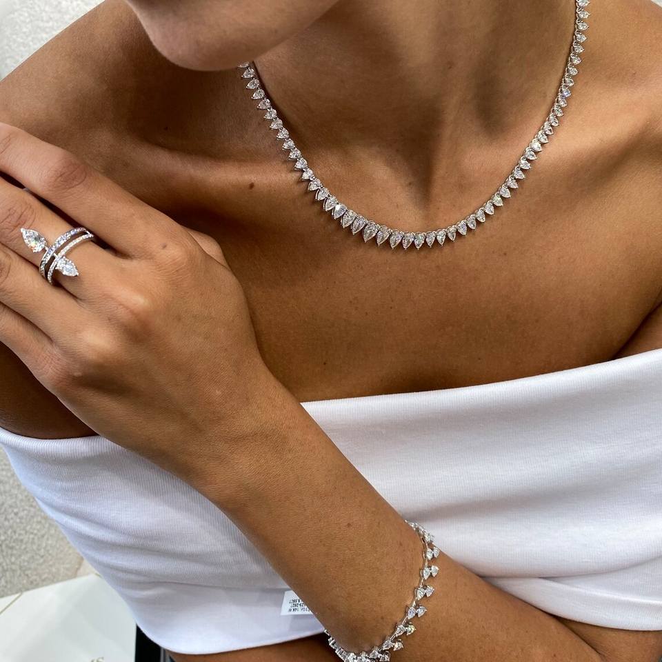 สร้อยคอทองคำแท้14K ทรงลูกแพร์ตัด VVS เพชรสำหรับปลูกในห้องปฏิบัติการได้รับการรับรอง IGI 16.99 CT เครื่องประดับผู้หญิง