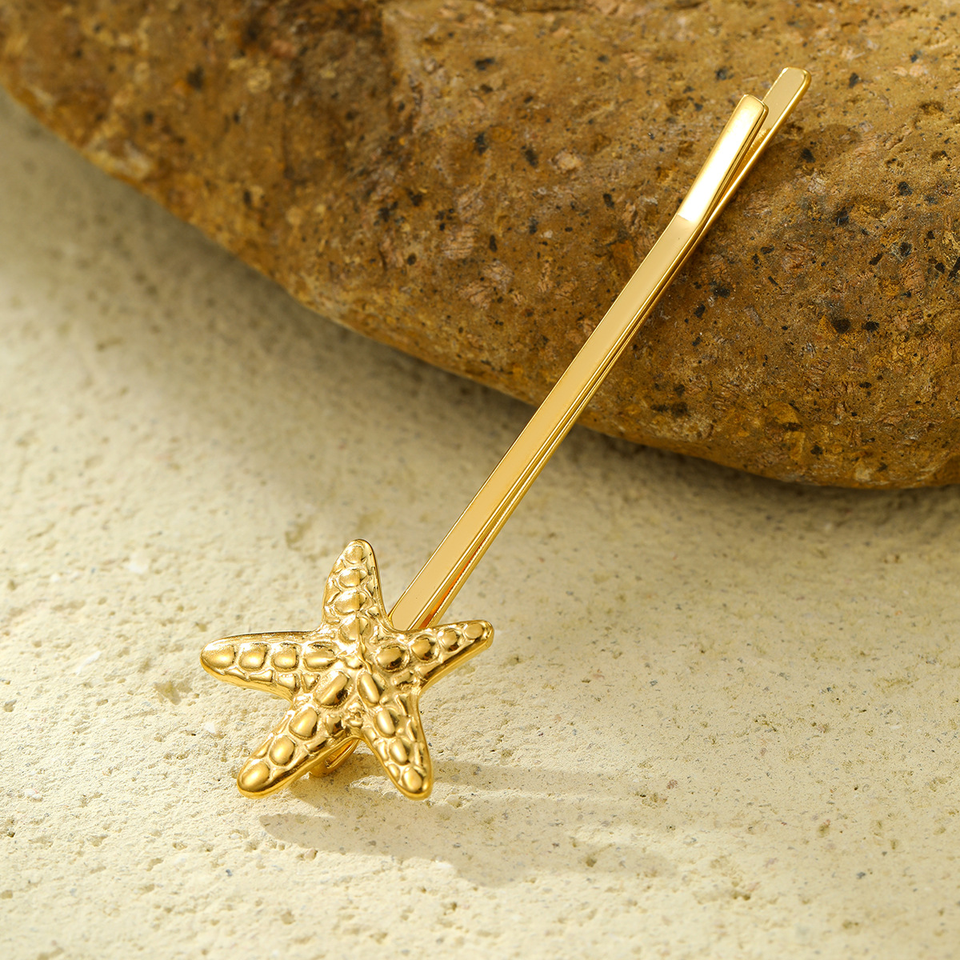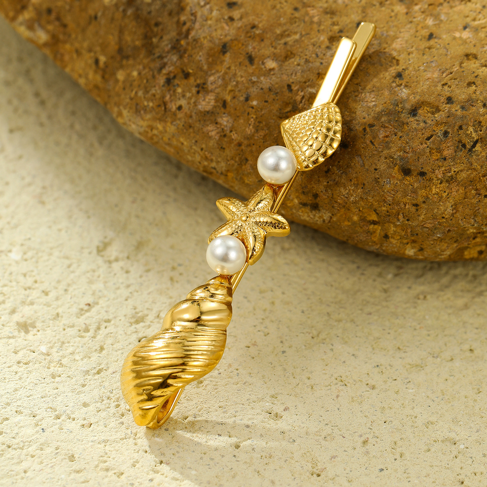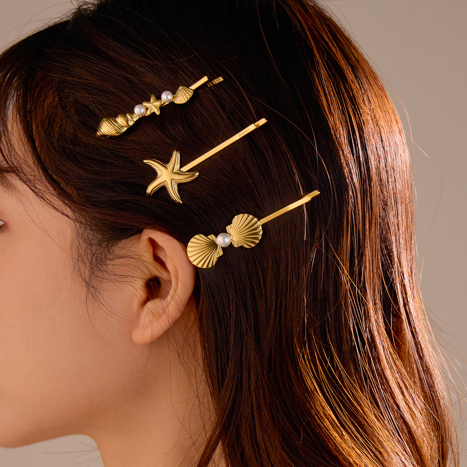 กิ๊บติดผมเปลือกหอยสแตนเลสสตีลสไตล์หรูหรา - ชุดกิ๊บติดผมชายหาดหลิวไห่ประดับเปลือกหอยมุกไทเทเนียมและปลาดาว