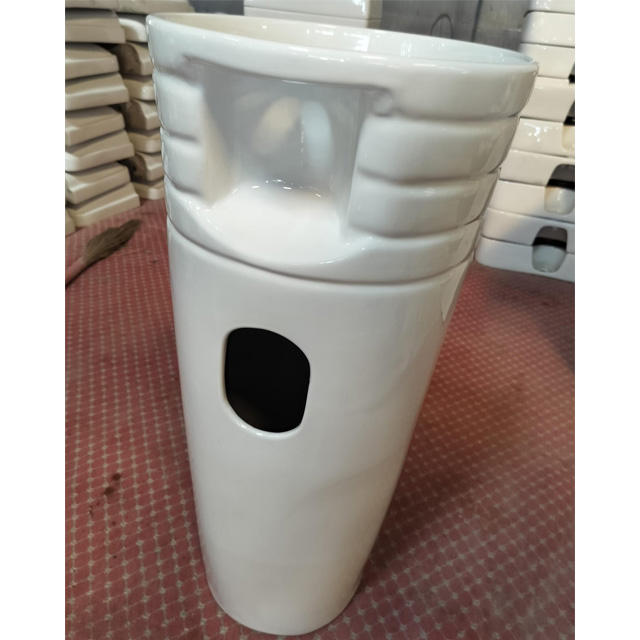 Luxury Style White Ceramic Pedestal Bathroom Basin One Piece Oval Boat Shape Single-Hole Faucet Freestanding Hand Wash Sink 1001
