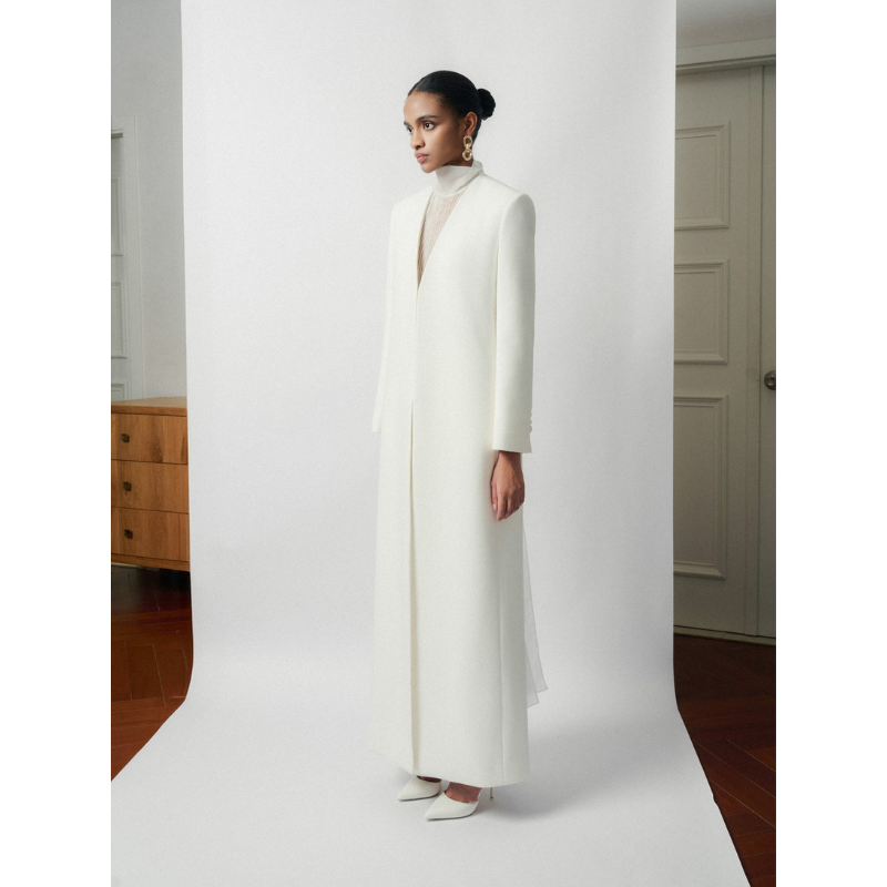 เสื้อโค้ทผู้หญิงสไตล์หรูหราสำหรับฤดูหนาว แบบยาว ผ่าหลัง ผ้าคุณภาพสูง ผลิตในเวียดนาม ยี่ห้อไวท์แอนท์