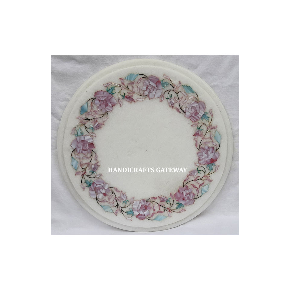 โต๊ะกาแฟหินอ่อนสีขาวทนทานสไตล์หรูหราสำหรับห้องนั่งเล่นทำด้วยมือทรงกลมฝังหินอ่อนสำหรับเฟอร์นิเจอร์ในบ้าน