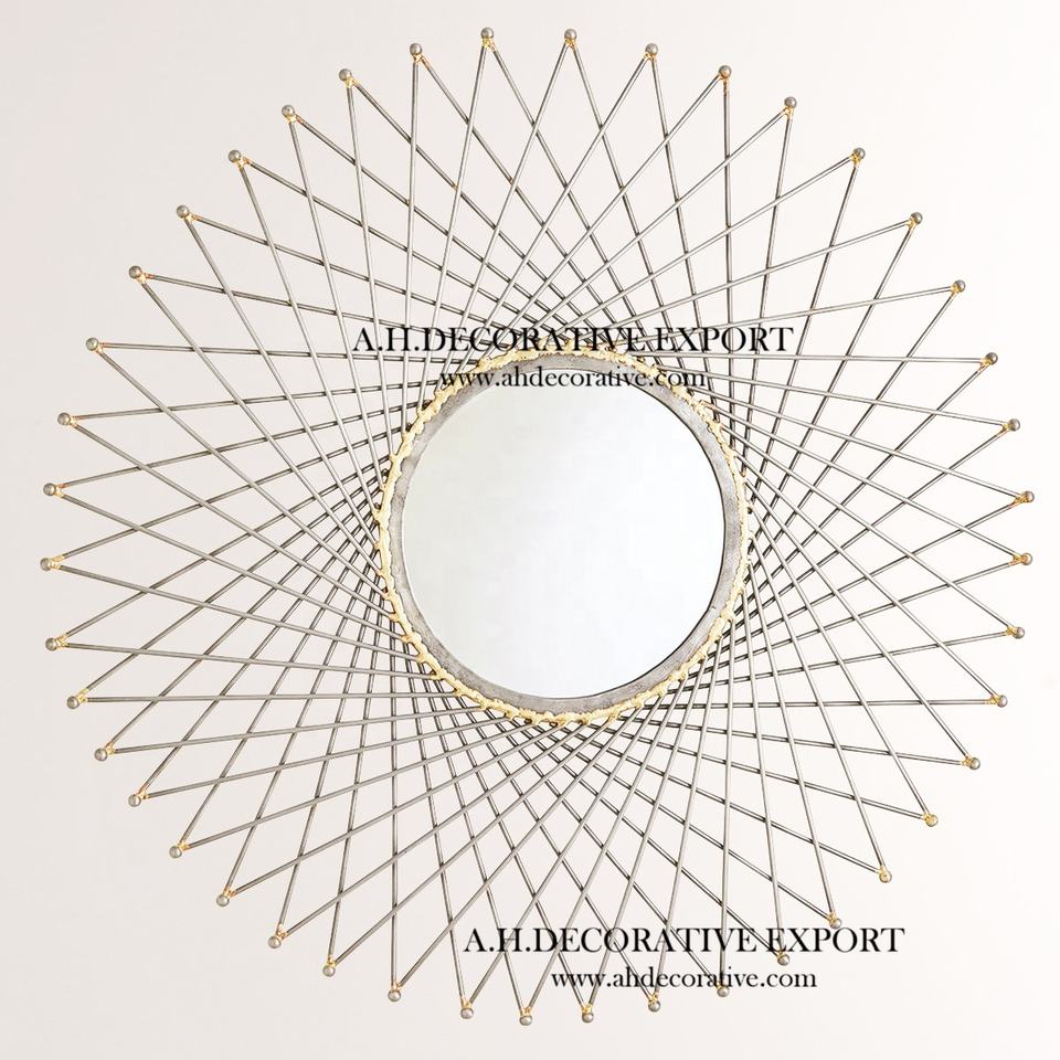 กระจกแขวนผนังรูปดวงอาทิตย์สุดหรูสำหรับห้องนั่งเล่นกระจกติดผนังกรอบกลมทำจากโลหะคุณภาพสูงสำหรับตกแต่งสำนักงาน