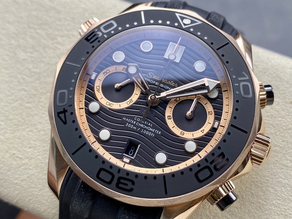 นาฬิกานักดำน้ำกลไกคุณภาพสูงหรูหรากันน้ำ44มม. N1จากโรงงานนาฬิกาเซรามิกโครโนสีดำลายกุหลาบเคลื่อนไหว9900 300ม.