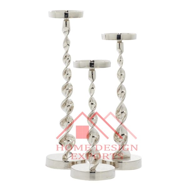ชุดเชิงเทียนทองเหลืองรูปเพชรสำหรับตกแต่งงานแต่งงานของตกแต่งงานแต่งงานทำจากอลูมิเนียมสีเงิน3ชิ้น