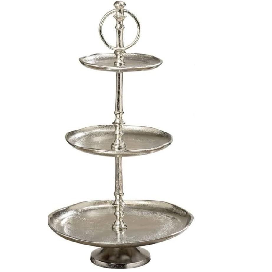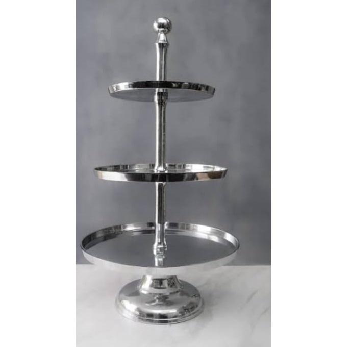 ของตกแต่งโต๊ะหรูหราสำหรับงานแต่งงาน ชั้นวางเค้ก 3 ชั้น ชุบนิกเกิล ชั้นวางเค้กโลหะสั่งทำพิเศษ สไตล์คลาสสิก
