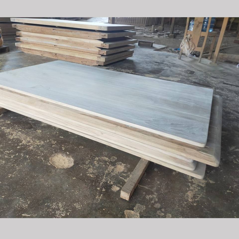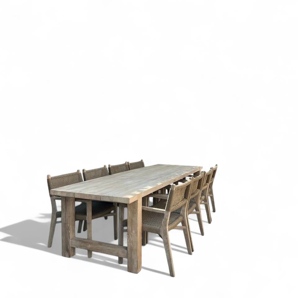 Luxury Teak Grey Large Outdoor Table Slatted teak top with braced teak legs Exterior Park Dining Furniture Table for 10-12 Seat