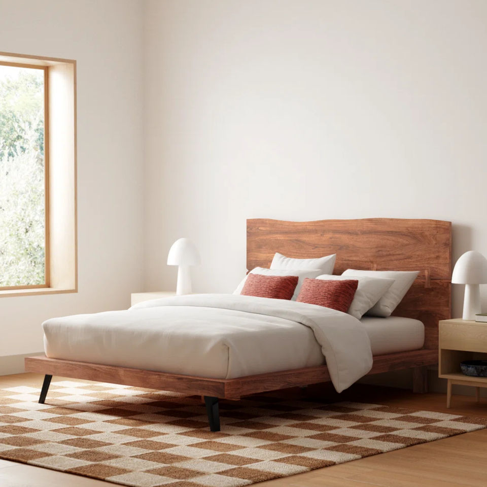 เตียงไม้สักหรูหราขนาดคิงไซส์ โครงไม้เนื้อแข็ง เป็นมิตรกับสิ่งแวดล้อม ทนทาน เฟอร์นิเจอร์ห้องนอนสไตล์ร่วมสมัย สำหรับโรงแรมและบ้าน