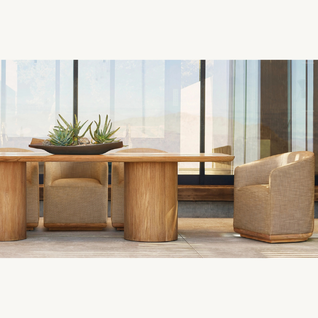 โต๊ะอาหารไม้สักสุดหรูทรงสี่เหลี่ยมผืนผ้ามุมโค้งมนสไตล์