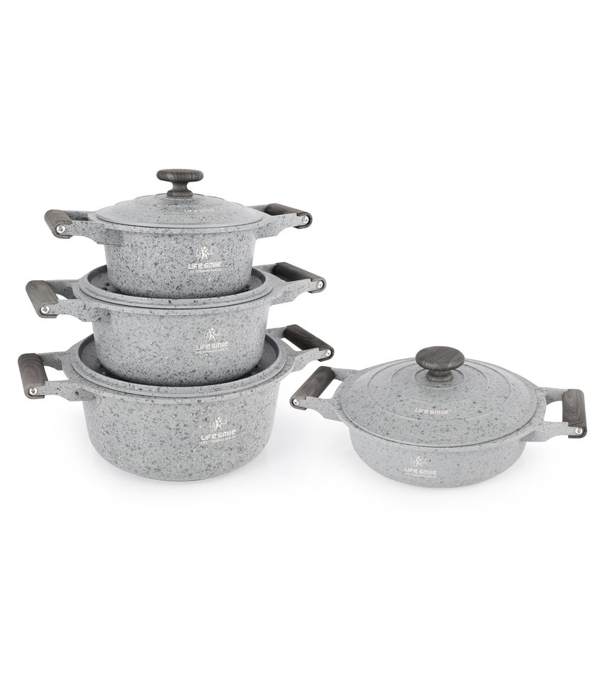 Luxury Titanium Granite Non-Stick Cookware Set with Heat-Resistant Bakelite Handles Energy-Saving Metal Lid,Induction-Ready Base