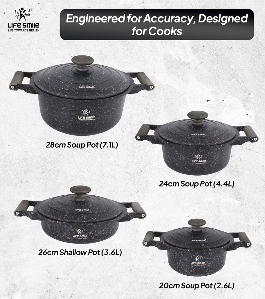 ชุดเครื่องครัวไทเทเนียมแกรนิตเคลือบกันติดอย่างดี พร้อมด้ามจับเบกาไลต์ทนความร้อน ฝาปิดโลหะประหยัดพลังงาน ฐานรองรับการใช้งานกับเตาแม่เหล็กไฟฟ้า