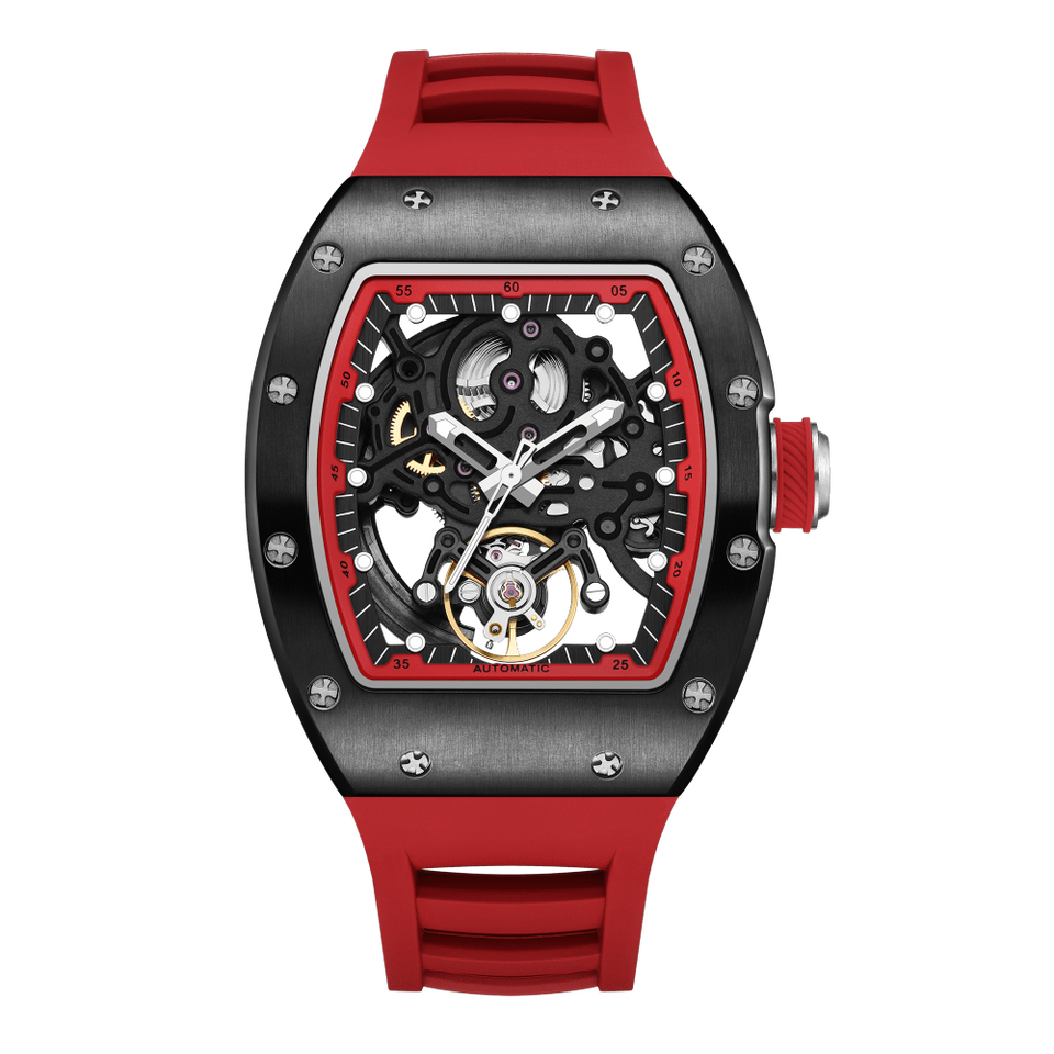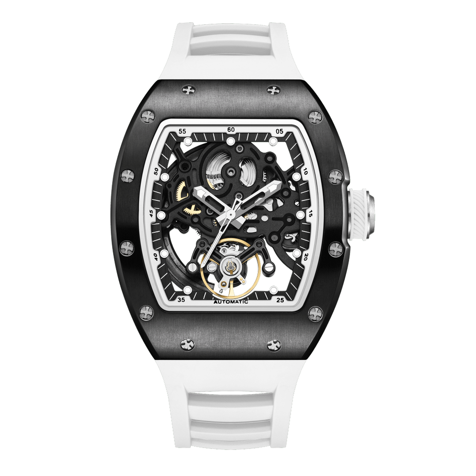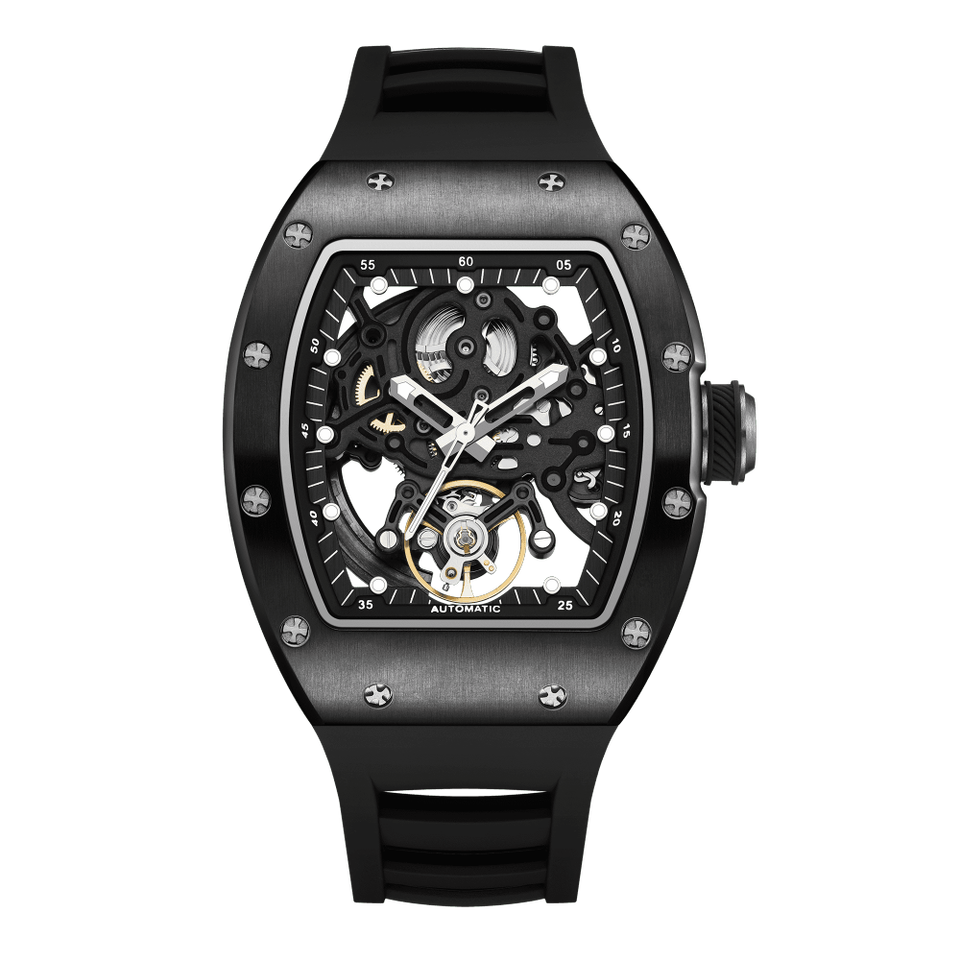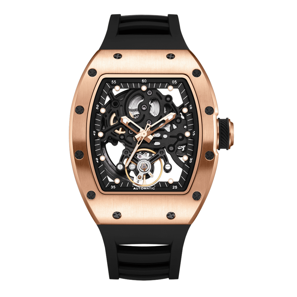 นาฬิกาข้อมือแบบอัตโนมัติสำหรับผู้ชายหรูหราพร้อมกลไกโครงกระดูกกลวงแบบดั้งเดิมมีคุณสมบัติทางกล